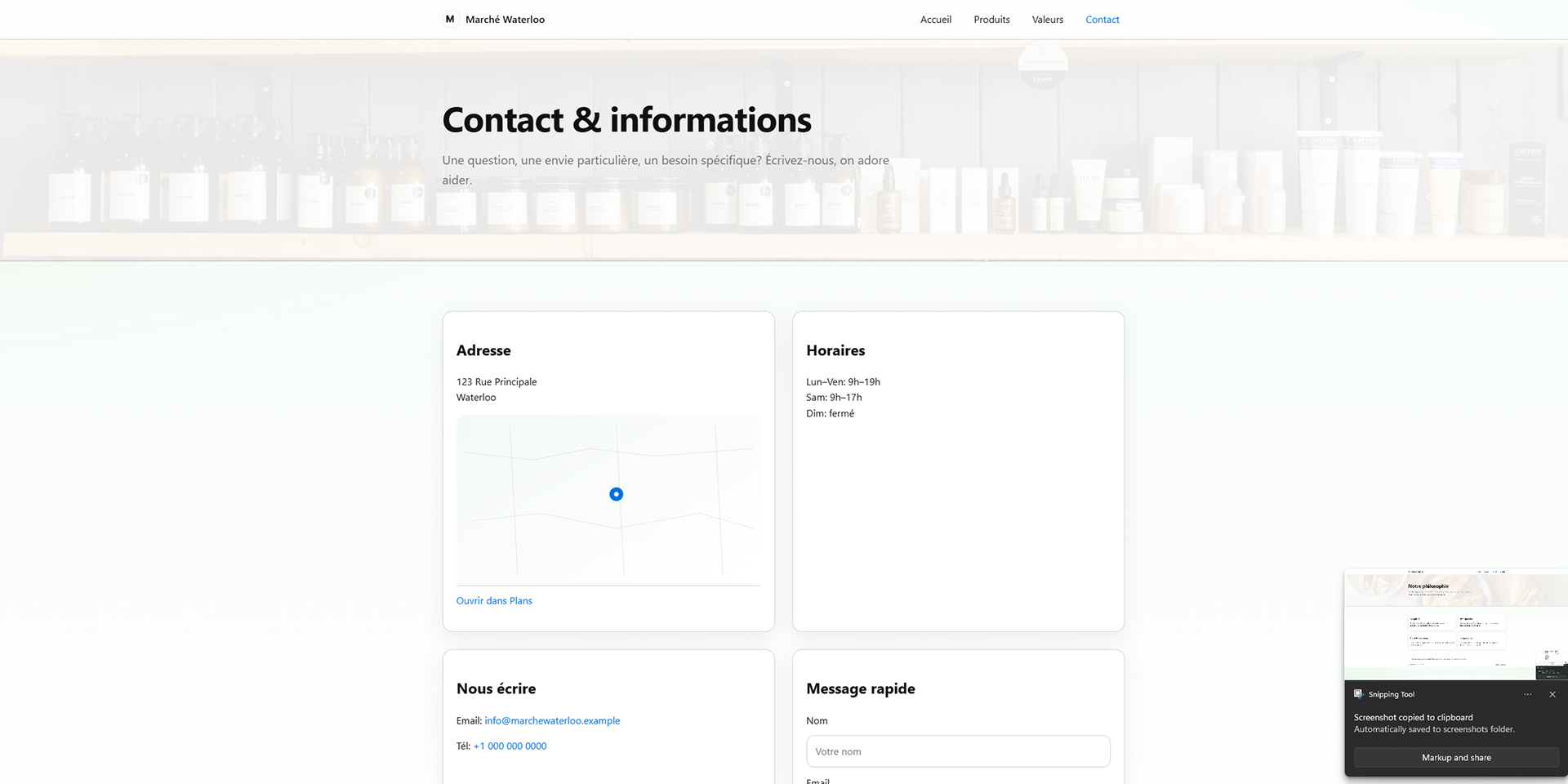 Le Marché de Waterloo est un lieu rassembleur qui met en valeur les producteurs locaux, les artisans et les commerces de la région. Pensé comme un espace vivant et accessible, le marché offre une expérience authentique axée sur la qualité, la proximité et le savoir-faire local.